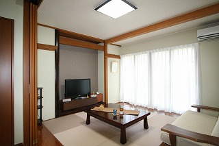 - リビングは日当たり、風とおしともに良く、気持ちの良い空間になりました。寛ぎの畳スペースになりました。