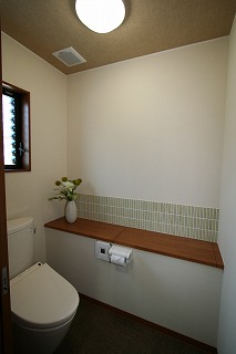 リフォーム後![]() 大便器、小便器に分かれていたトイレをひとつにしたことでゆったりとした空間が確保できました。 ![]() カウンター部分は収納スペースになっています。 |