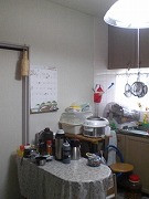 - 6帖のダイニングキッチンは狭く、物もあふれていて落ち着かない