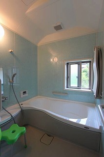 リフォーム後![]() 淡いブルーのパネルがさわやかな印象の浴室はお手入れも楽に... |