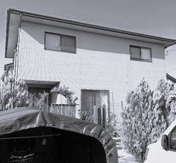 リフォーム後![]() モスグリーンの外壁に白と木目のアクセントで既存の北欧ガーデンを引き立てる ![]() アルミの格子の部材を利用しオリジナル布団干しバーを作成