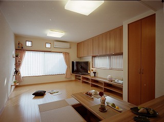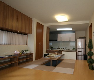 リフォーム後![]() キッチンからわざわざ廊下を通ってリビングに食事を運んでいましたが、LDK形式になり、家族の様子も猫の様子も見渡せるようになりました。 ![]() ダイニングスペースは掘りごたつ式にして、 |