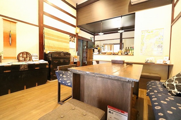 リフォーム後![]() 真壁づくりや既存の建具を極力生かすことによって、 民宿に泊まりに来られた方も のんびりとした田舎暮らしを体験していただけます。 ![]() 既存の天井を取り払い、梁を再現させました。 テーブルも既存の床板を加工し、作成しました。 |