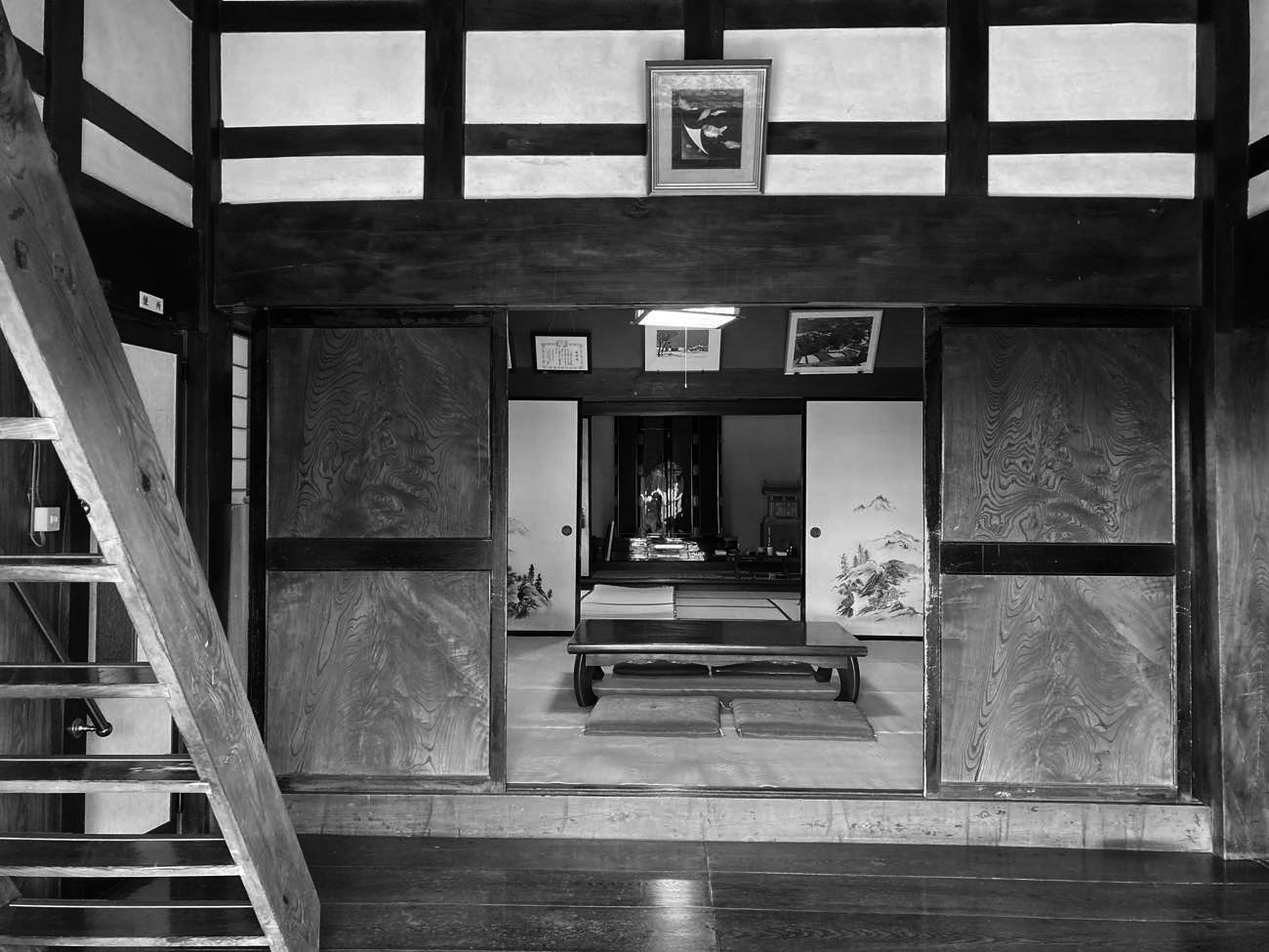 リフォーム後減築することで谷までの距離を確保し、安全性を高めた。減築部分に使われていた欄間や襖は移設して継承した。 |