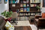 ●玄関ホールの延長線上に、【たまり場・団らんの場】を意味するホワイエの機能を持たせたフリースペースを配置。大量の所蔵図書を収蔵できる図書室、PCコーナーや応接間としての役割も持たせた。