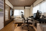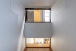 ●もともと仏間からリビングへの通路となっていた部分と仏間の収納だった部分を利用して中2階を設け、猫専用のパーソナルスペースを作った。スペース内は外を眺められる採光窓や温湿管理ができるよう換気扇を設置。猫にとって居心地の良い空間とした。
