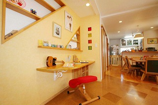 - 廊下を少し斜めにベランダ側に増築することで、奥様はキッチンに立ちながらも、小さいお子様たちに目が届き、安心して家事ができます。