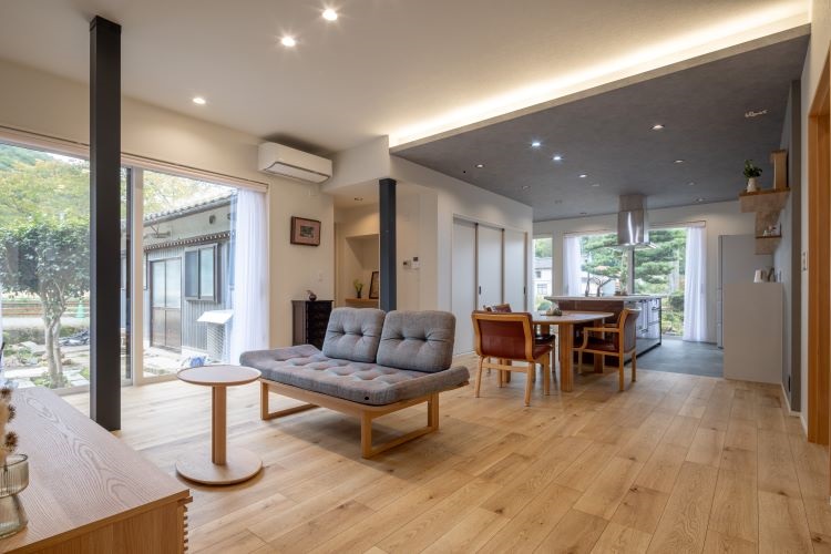 - コミュニケーションが取りやすいよう和室と居間をつなげて広々LDKにした