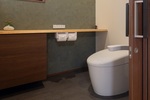 リフォーム後![]() アームレストの設置と2枚引戸でバリアフリー仕様 ![]() カウンター下がオープンなので車いすでも利用できる |