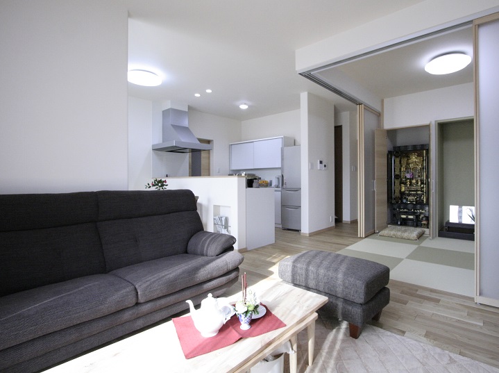 ●建具で仕切れる和室コーナーは段差を解消し、使いやすくしました。