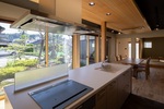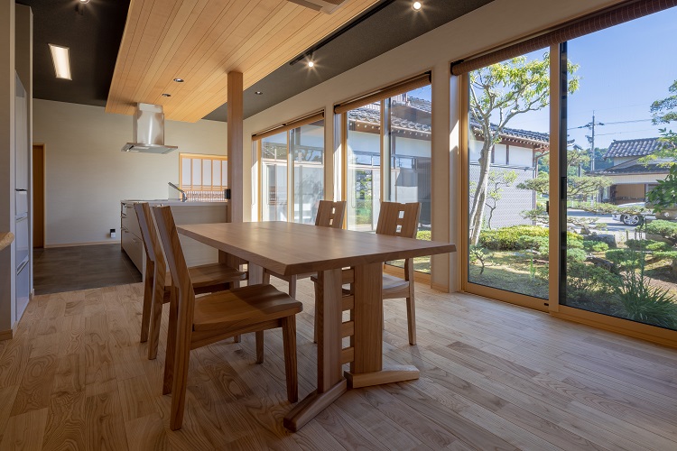 庭を囲むように大きな窓を設けたことで、常に部屋の中が明るく、庭を眺めながら料理をすることができるので、料理をするのが楽しみになりました。