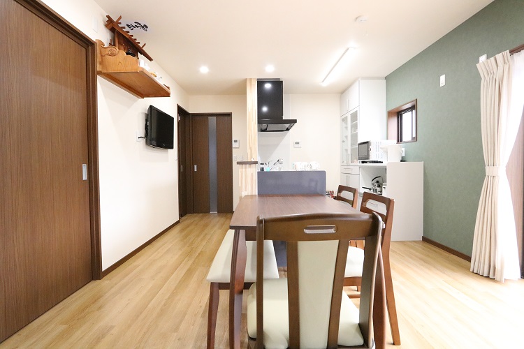リフォーム後![]() キッチンとダイニングテーブルを並列にしました。 配膳もしやすい配置です。 ![]() 以前は座敷だった部分をリビングスペースに。 和の雰囲気を大切にデザインしました。 ![]() リビングとダイニングキッチンは扉で仕切ることができます。 オーダーの三枚引き戸で大開口です。 |