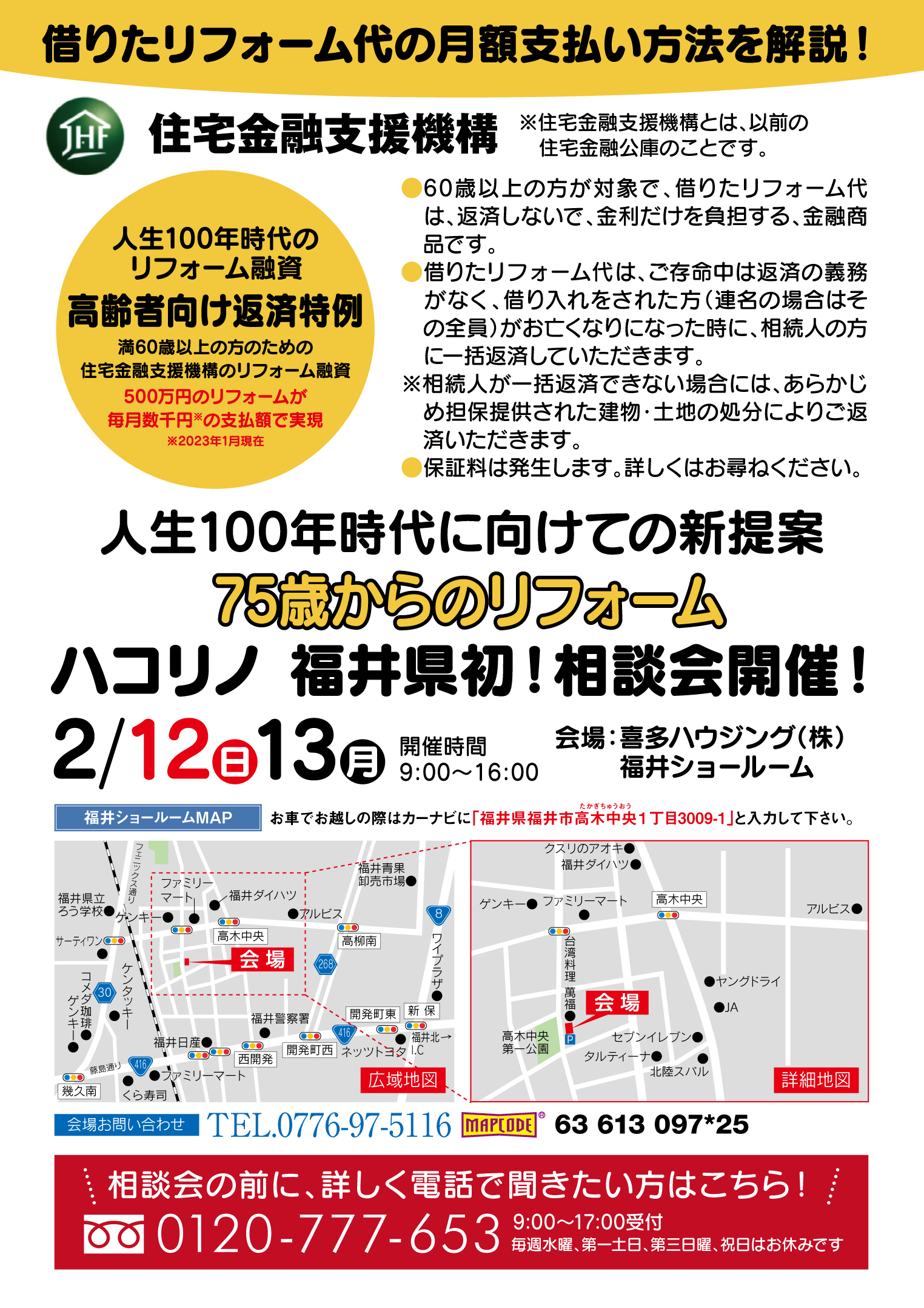 2月12・13日(日)(月) 福井県福井市高木中央1丁目「75歳からのリフォーム~ハコリノ相談会」